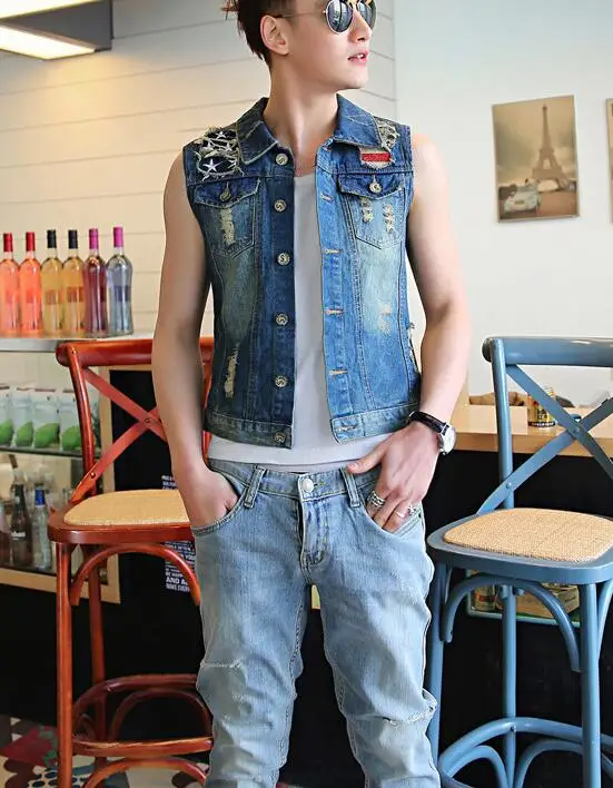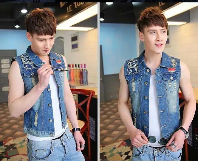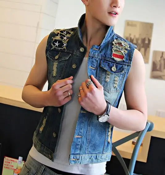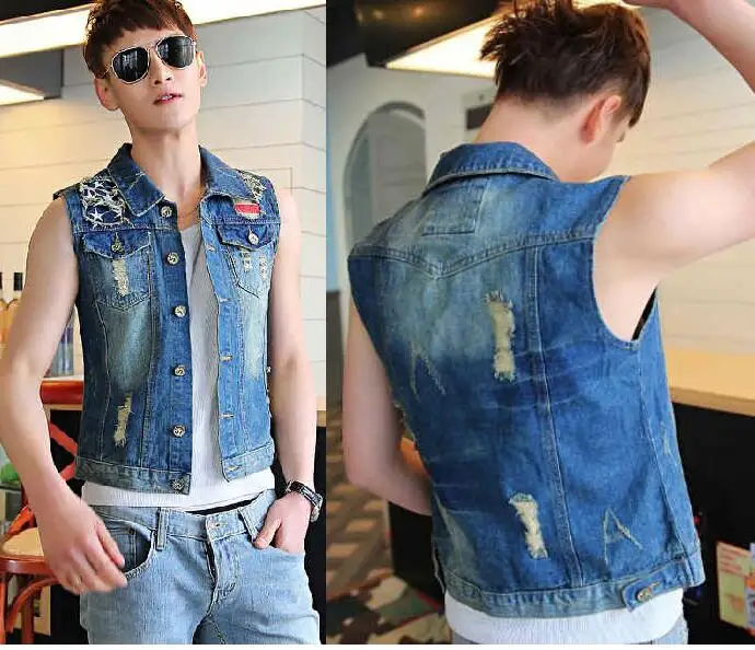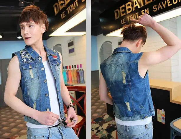 Sleeveless Ripped Jean Jackets Men's Denim Vests Men Cowboy Waistcoat Brand Denim Jacket Male Waistcoat Multiple Colors Available