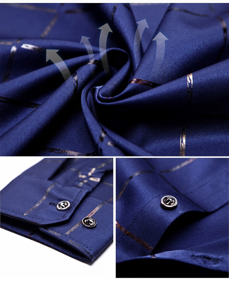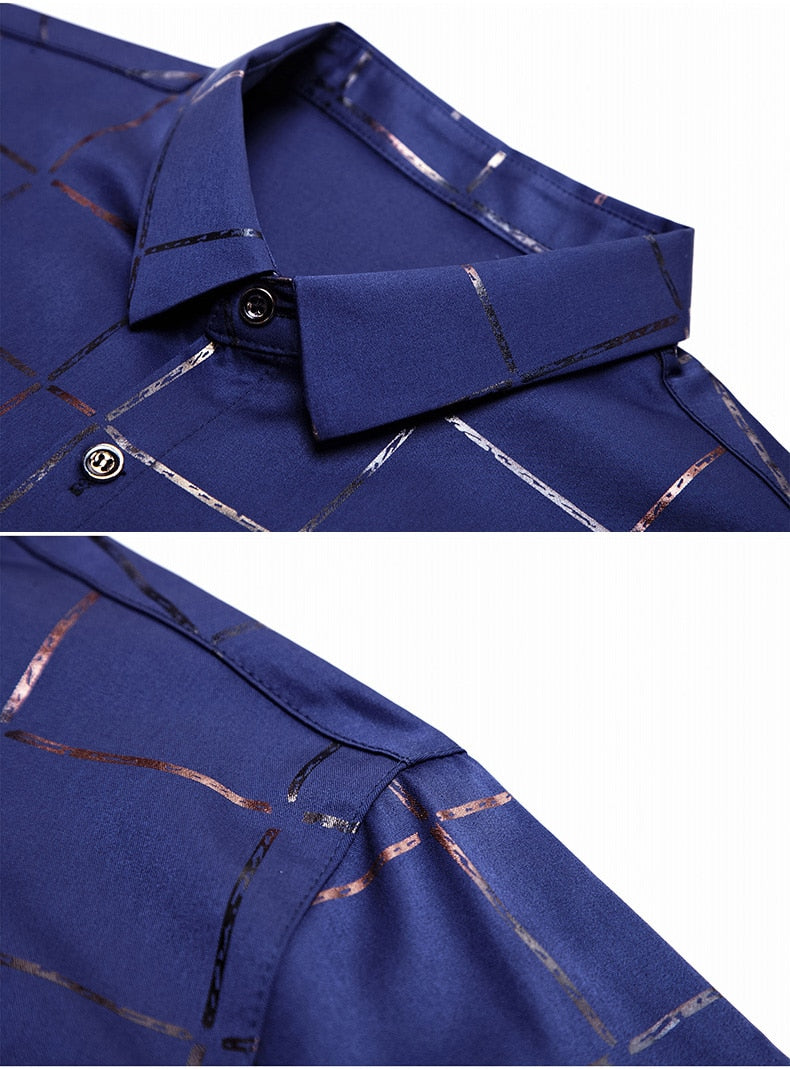 Plaid Long Sleeve Slim Fit Dress Shirts- Men