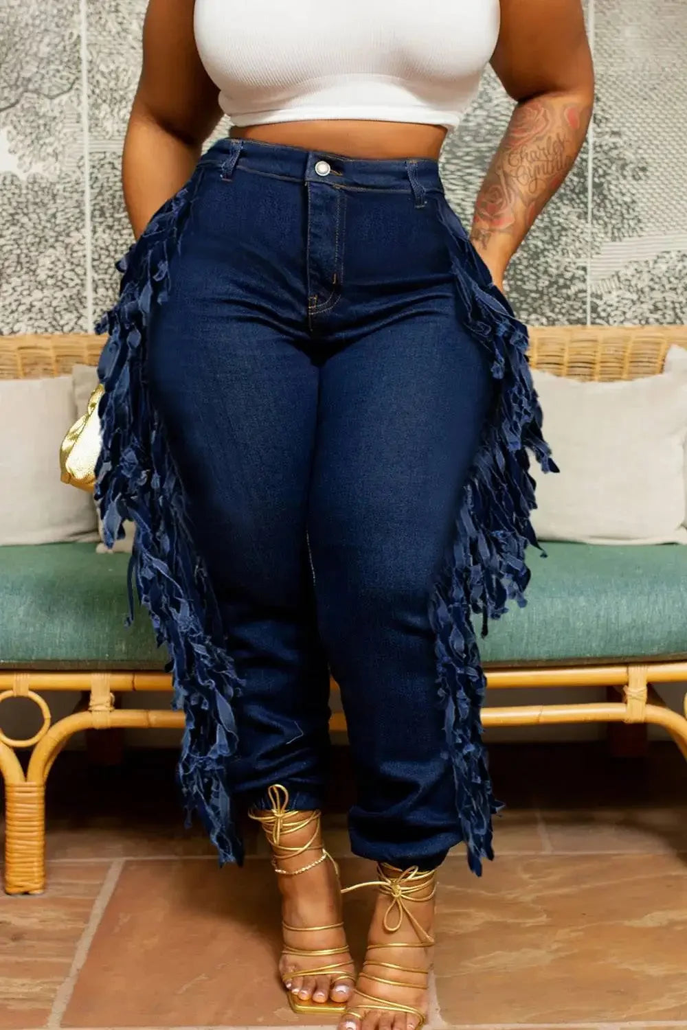 Plus Size Daily Jeans Denim Fringe Asymmetric Waist Cargo Jeans With Pocket Vestidos para mujer