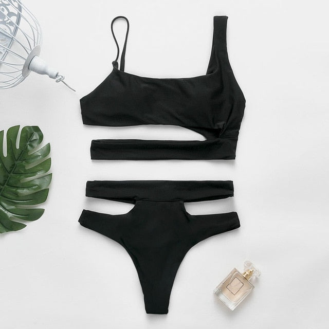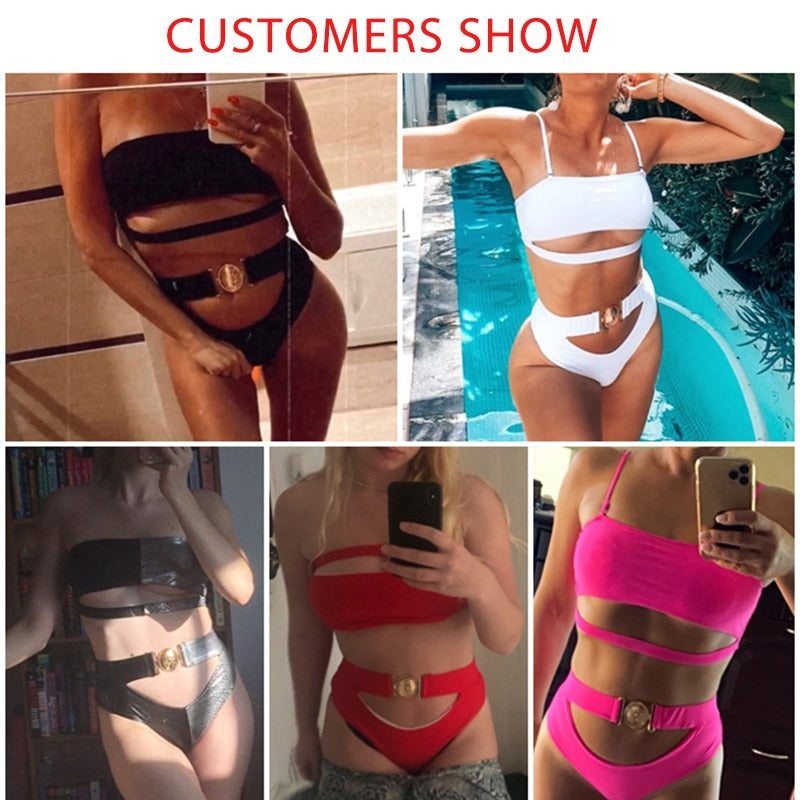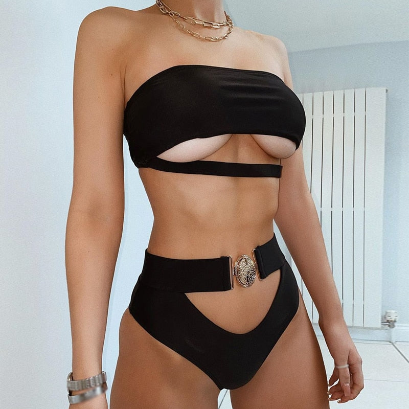 Hollow Halter Top Metal Buckle 2pc Bikini