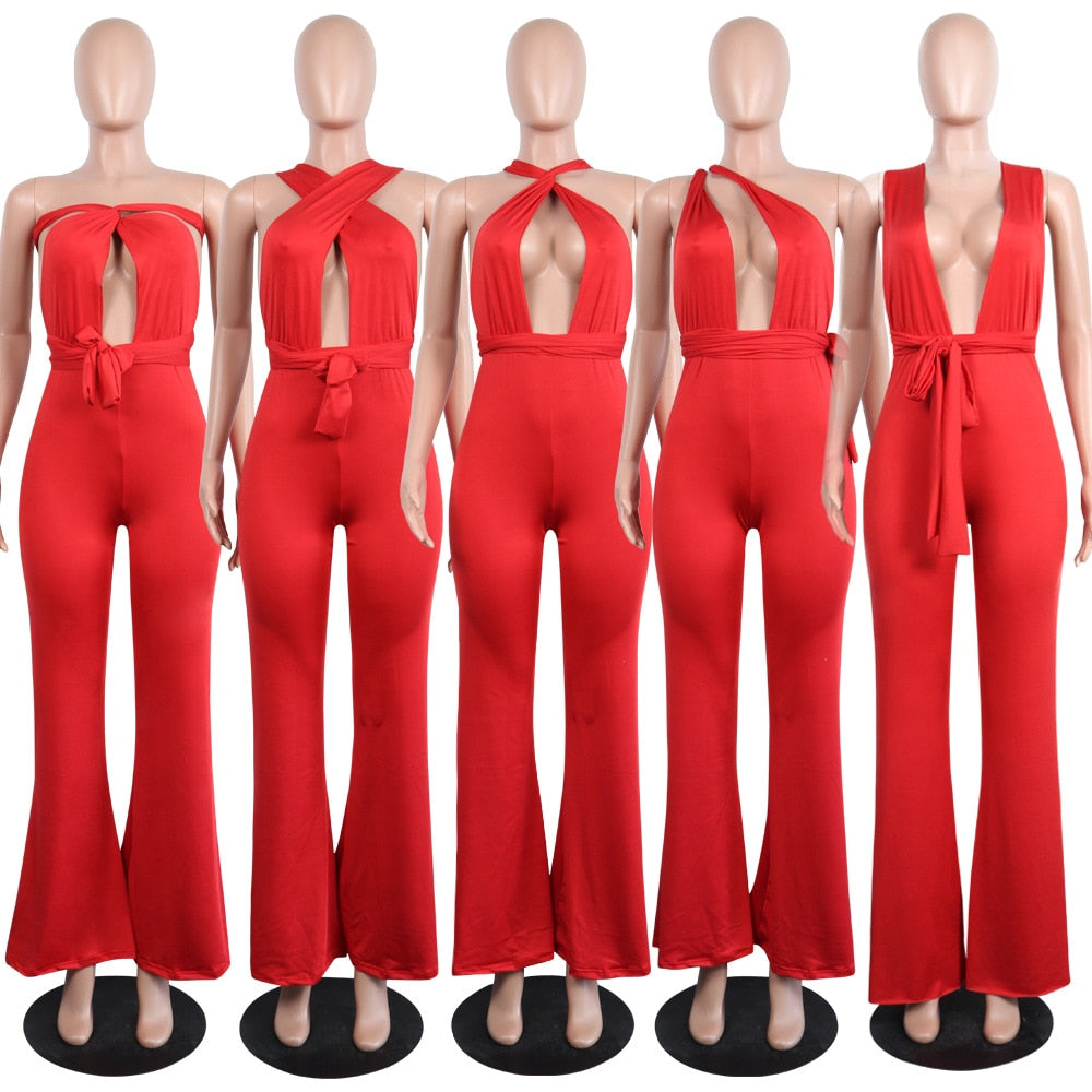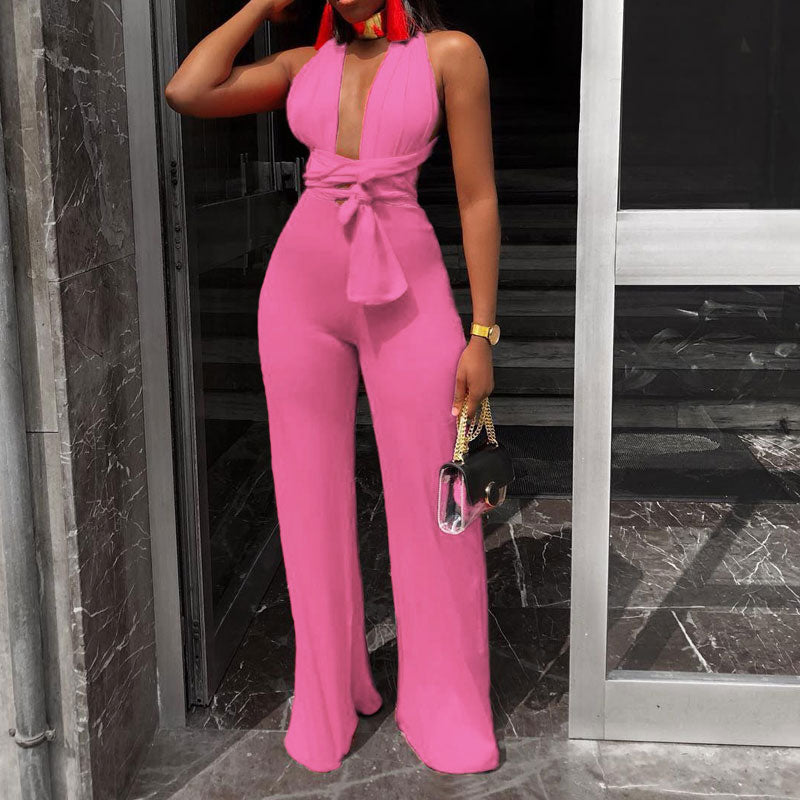Multi-way Deep V Neck Jumpsuits Sleeveless OMSJ-W