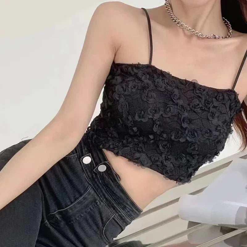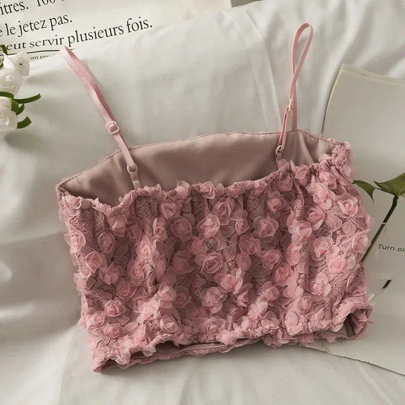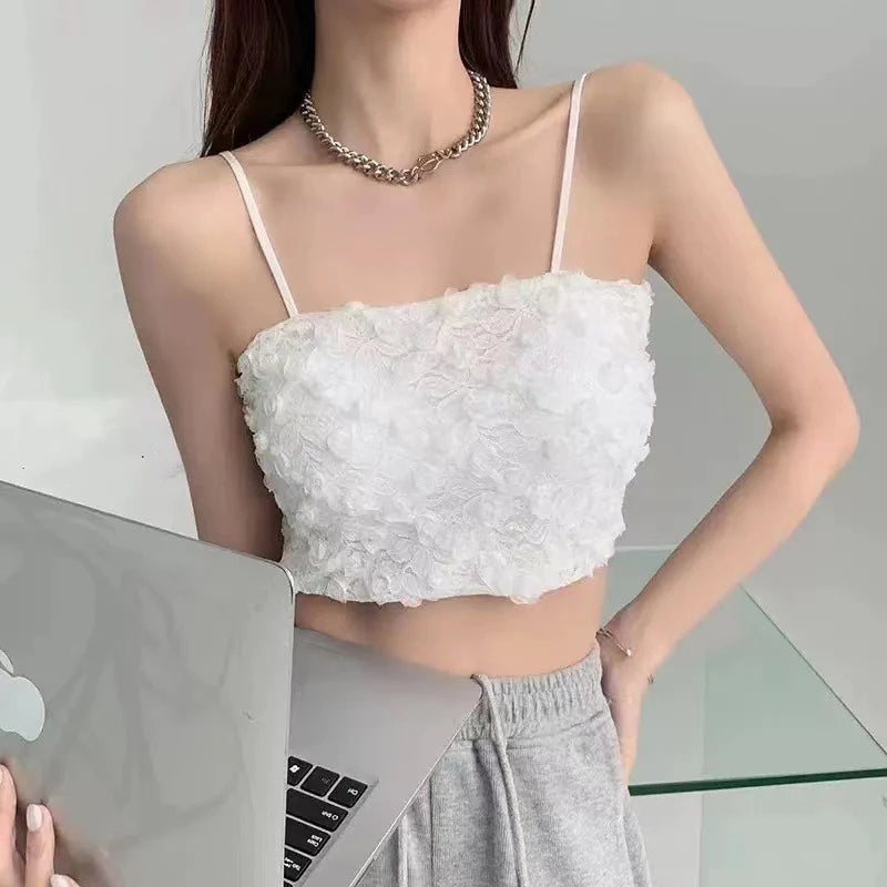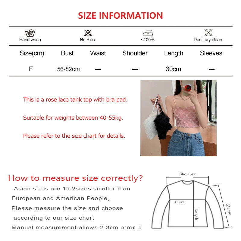 Rose Lace Tank Tops With Bra Pad Crop Tops