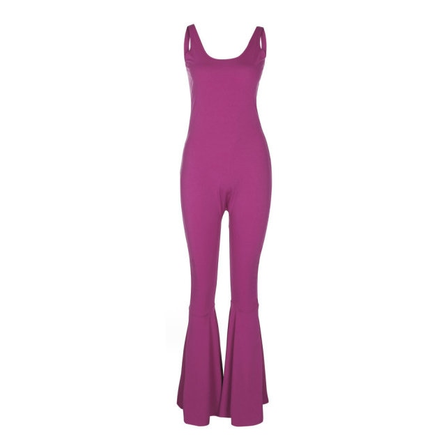 U Neck Sleeveless Backless Long Flare Pant Jumpsuit