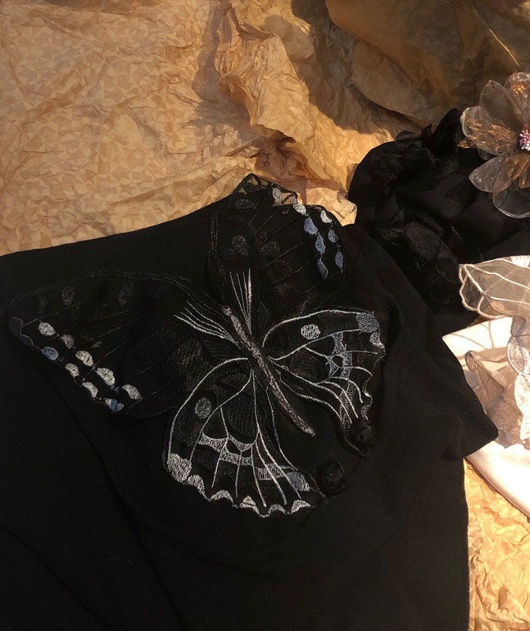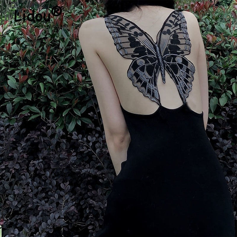 Backless Butterfly Embroidery Hollow Out Deep V-neck Gown