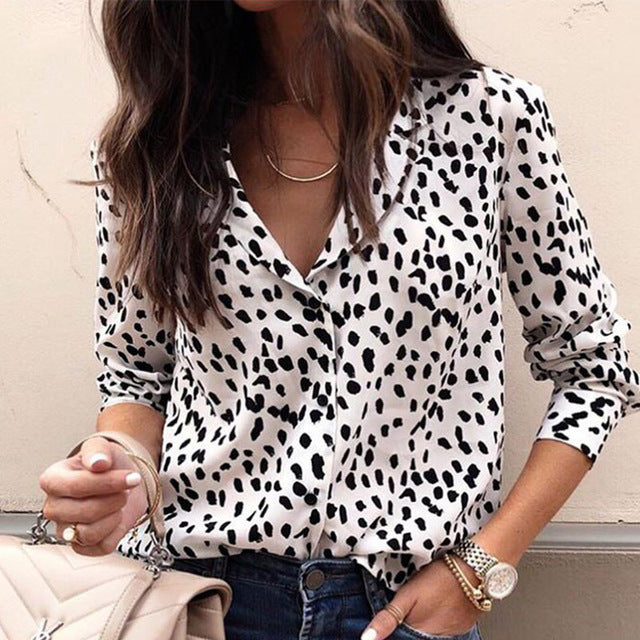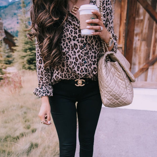 Long Sleeve Winter Shirts Female: Leopard Print Blouse