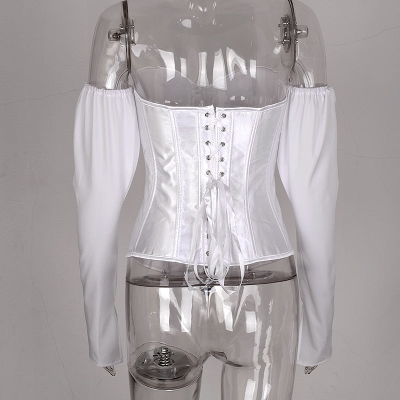 Offshoulder Back Tie Up Corset Style Top