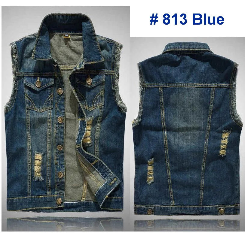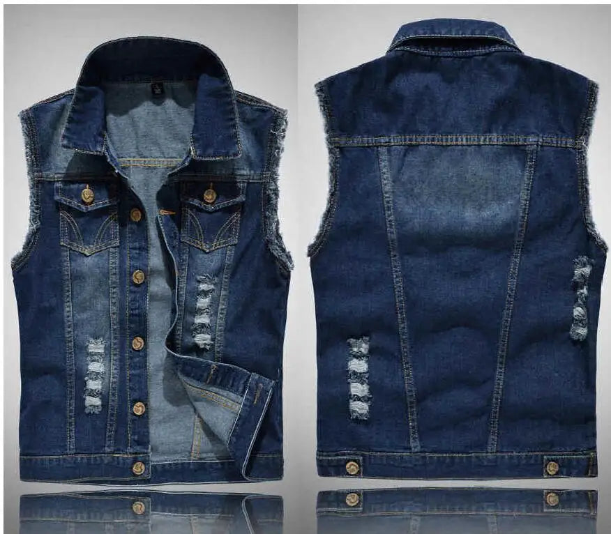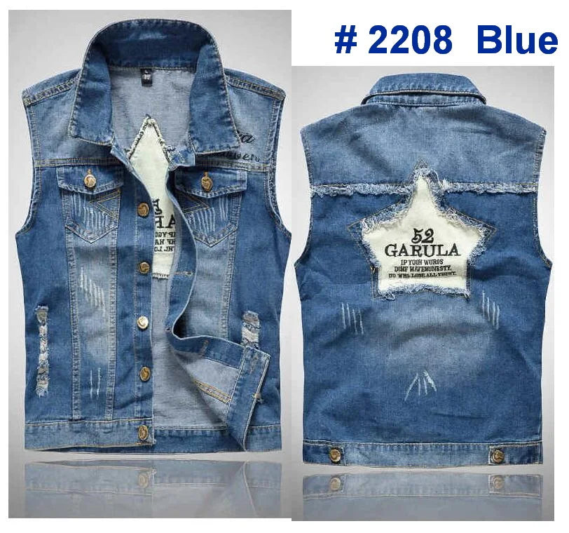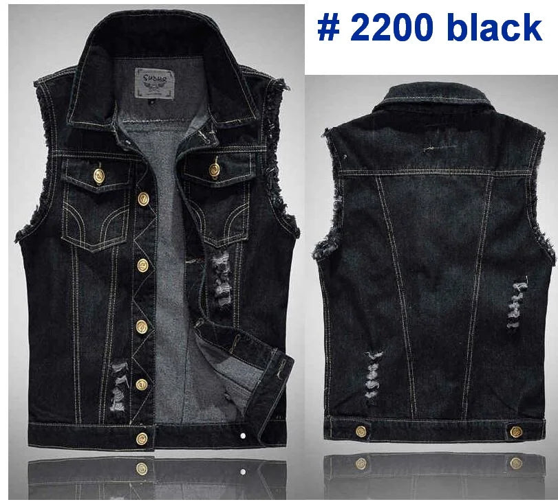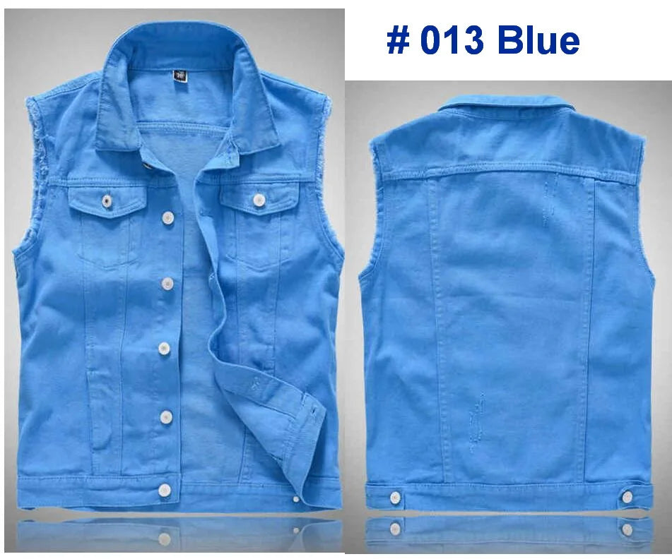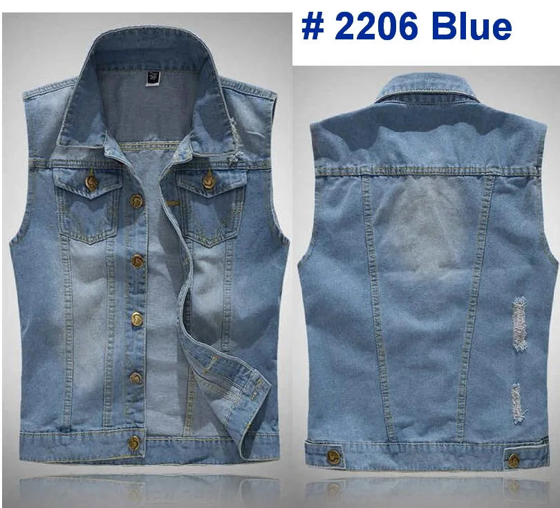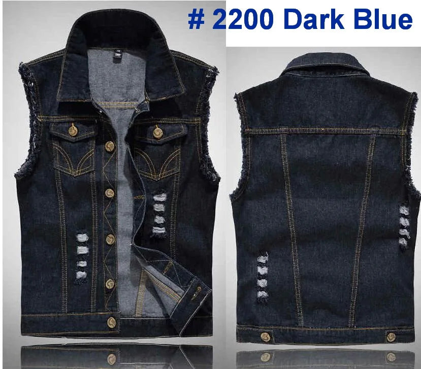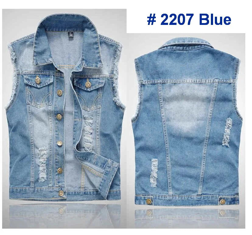Sleeveless Ripped Jean Jackets Men's Denim Vests Men Cowboy Waistcoat Brand Denim Jacket Male Waistcoat Multiple Colors Available